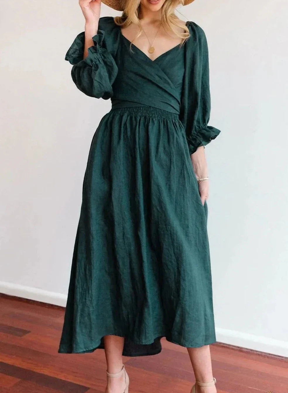 LM | Elegant A-line dresses with a square neckline and fixed ruffles