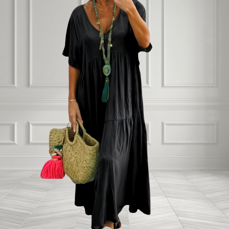 LM | Wide dress with V-neck and three-quarter sleeves in a modern style