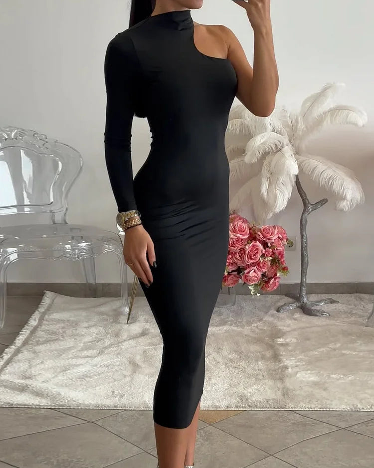 LM | Plain-colored one-shoulder dress for a modern look
